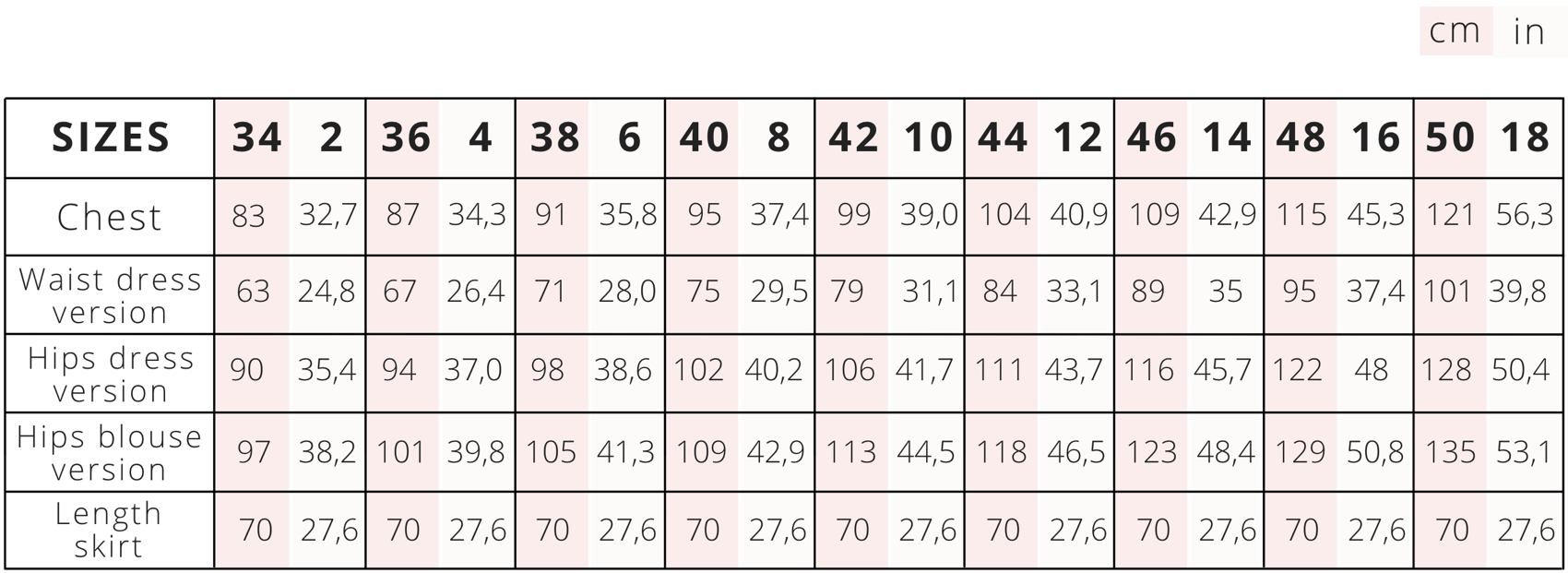 The dress characteristics: