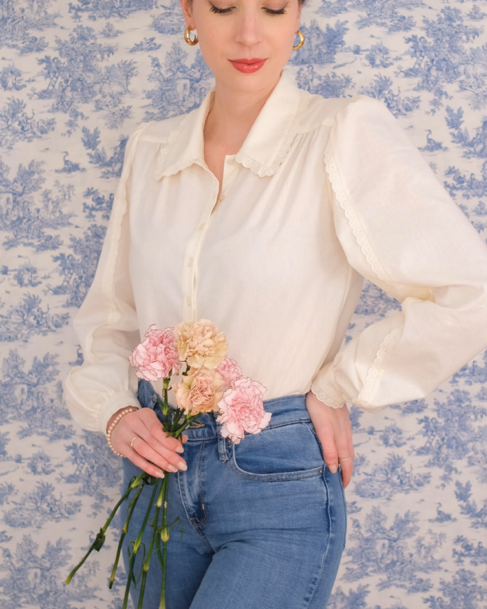 Avec des manches longues ou courtes, des incrustations de broderie ou non : les versions du modèle Adrienne sont nombreuses. Grâce ce patron, il est aussi bien possible de se coudre une variante classique pour se rendre au travail, qu’une autre plus romantique pour flâner l’été.