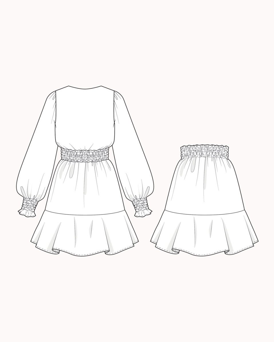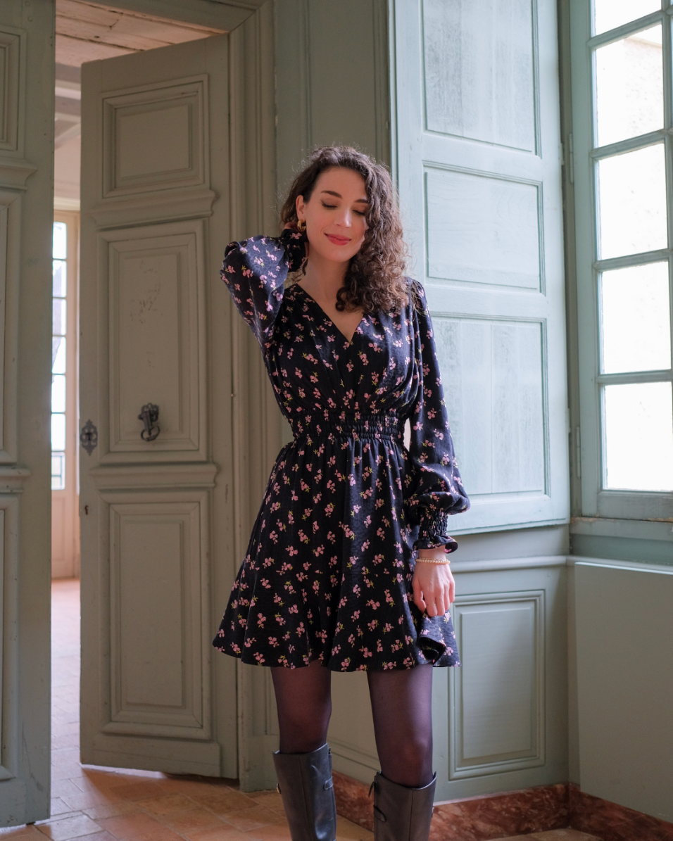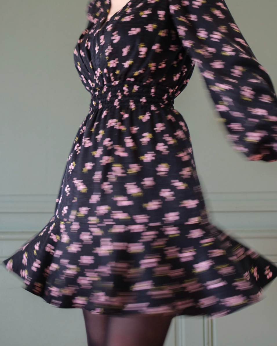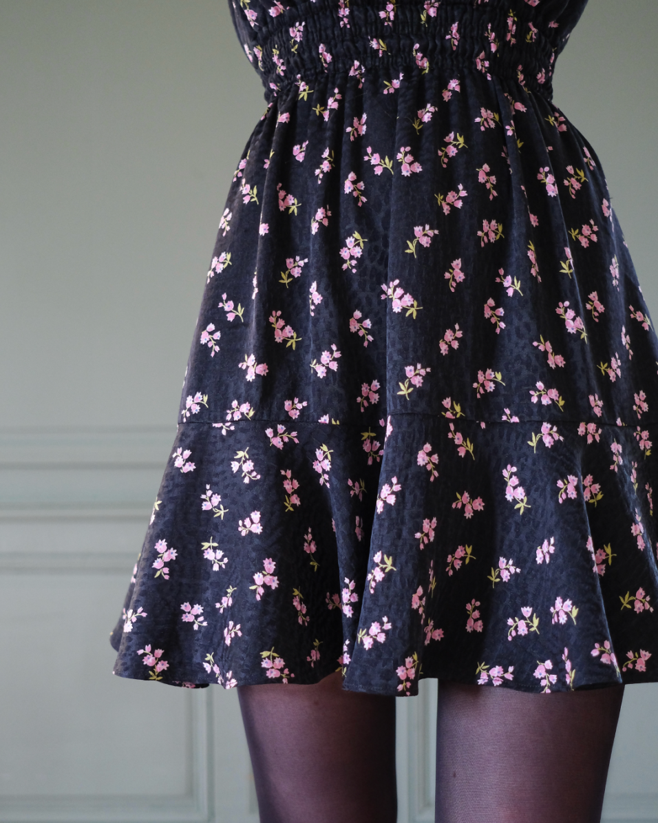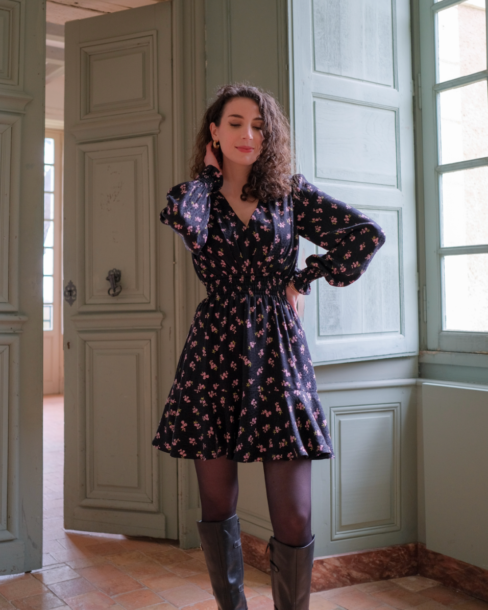 Colombe est une robe intemporelle, à porter de l’automne au printemps. Avec des bottes et un cardigan pour aller au travail, ou bien une paire de talons pour sortir danser, elle s’adapte à toutes les situations ! Elle présente un jeu de plis sur le buste, une ceinture élastique, une jupe à volant et des poignets de manche “effet smocks”. Intégralement doublée à l’exception des manches, sa coupe fait la part belle aux étoffes fluides. Le modèle se décline également en jupe.