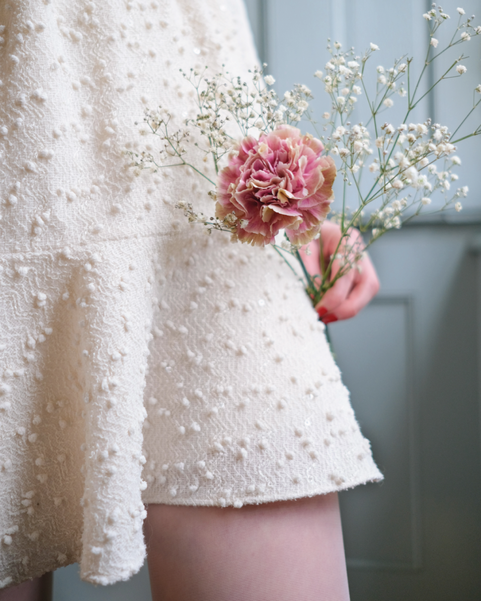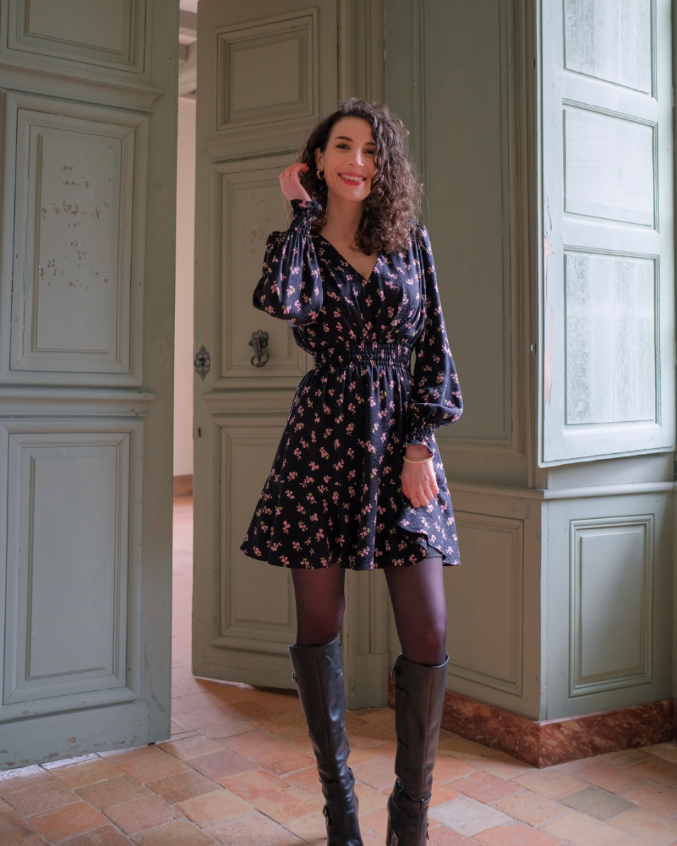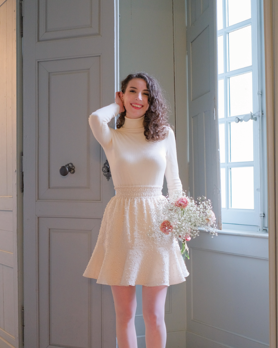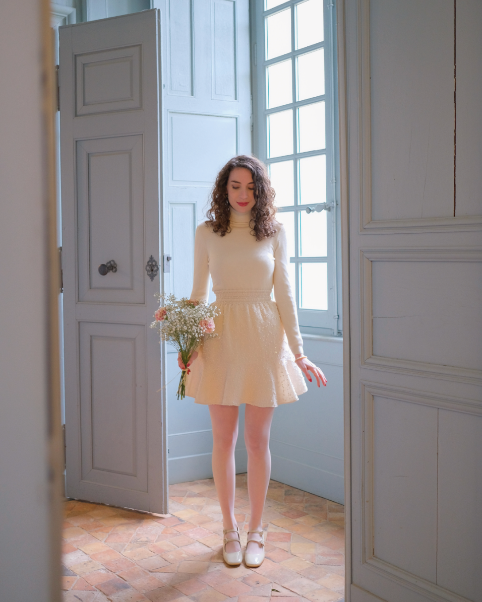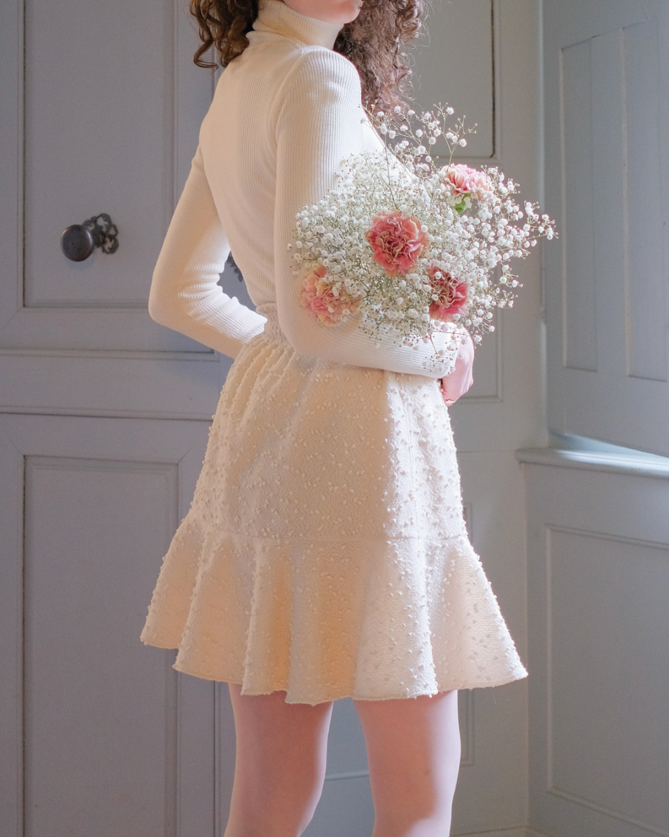 Colombe est une robe intemporelle, à porter de l’automne au printemps. Avec des bottes et un cardigan pour aller au travail, ou bien une paire de talons pour sortir danser, elle s’adapte à toutes les situations ! Elle présente un jeu de plis sur le buste, une ceinture élastique, une jupe à volant et des poignets de manche “effet smocks”. Intégralement doublée à l’exception des manches, sa coupe fait la part belle aux étoffes fluides. Le modèle se décline également en jupe.