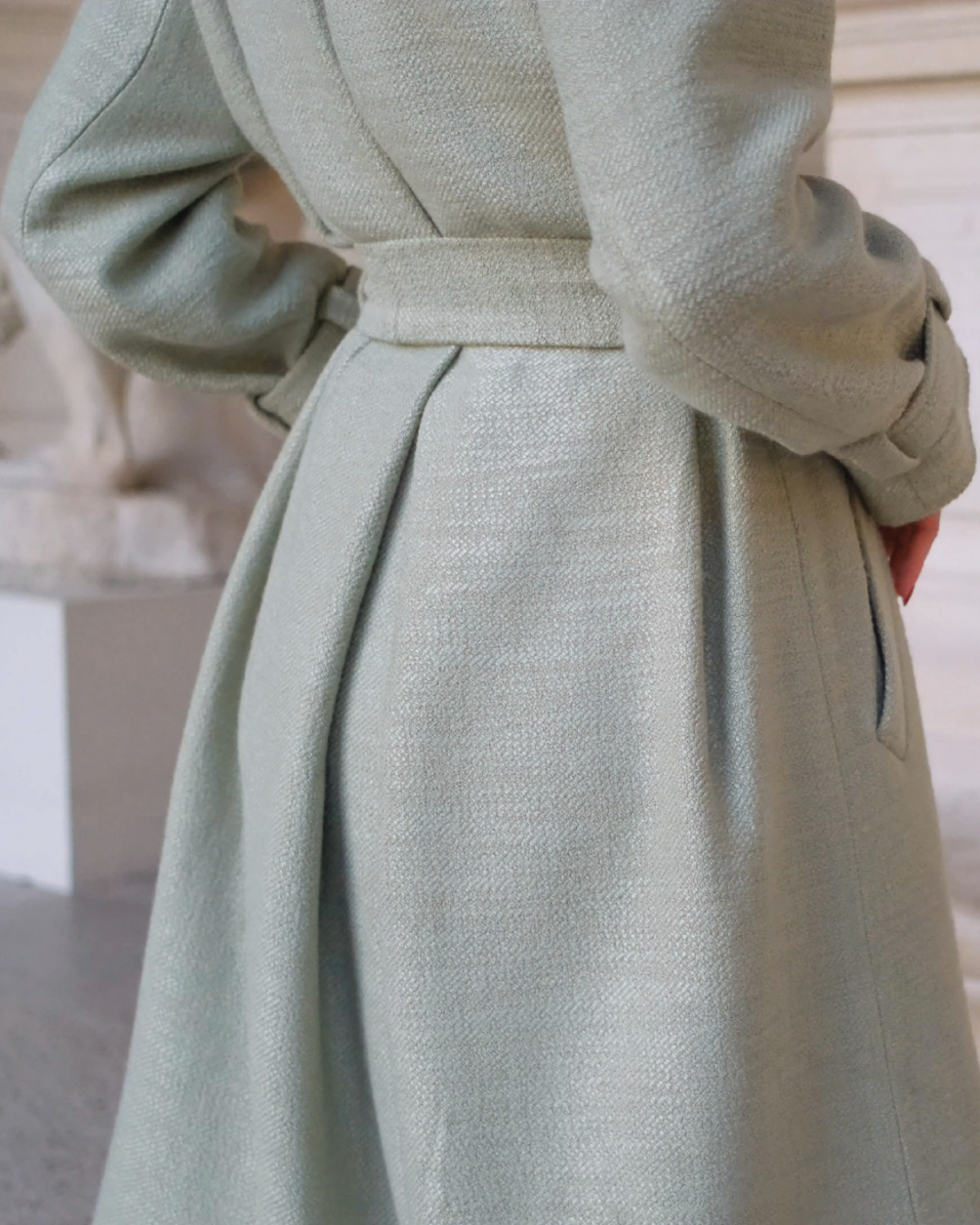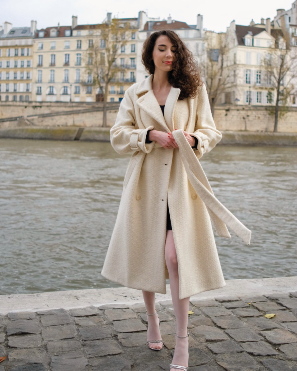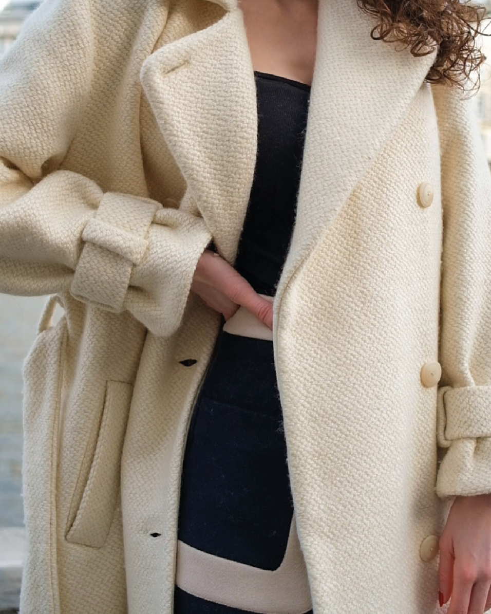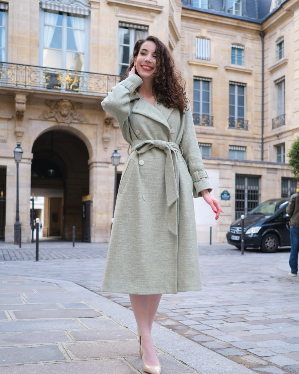 Le modèle Bénédicte est le premier vêtement d’extérieur que je vous propose ! Élégant, raffiné, intemporel, il se fera l’incontournable de votre garde-robe. C’est un manteau trench croisé, ceinturé à la taille, présentant un ravissant pli creux dans le dos, que l’on peut porter boutonné jusqu’à l’encolure ou bien ouvert. Une fois enfilé, sa coupe aux inspirations vintage vous confèrera une allure distinguée sans effort. Déclinable en trench demi-saison ou en manteau hivernal, Bénédicte vous permettra de varier les projets. À vous de l’interpréter à souhait au fil des saisons !